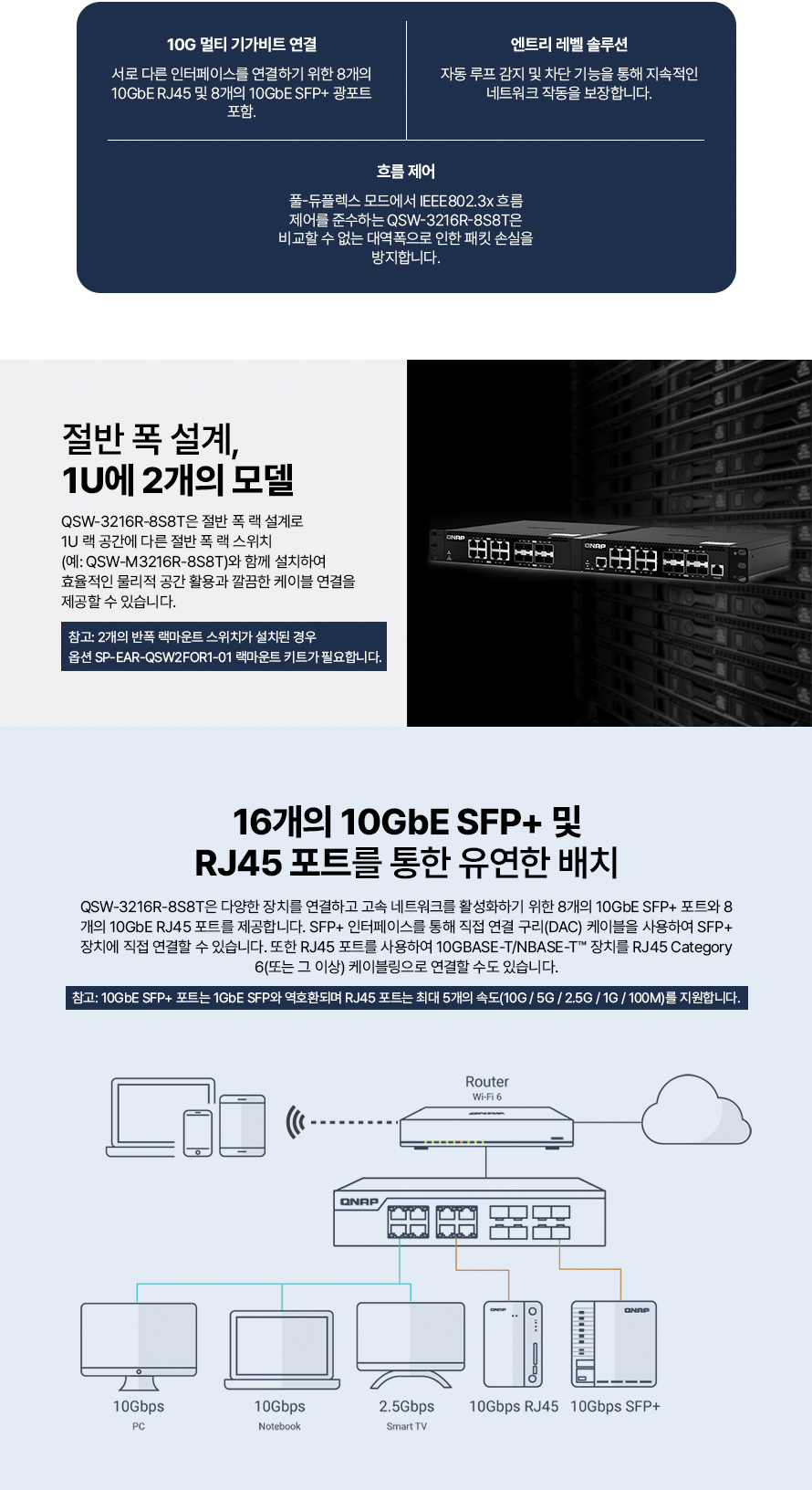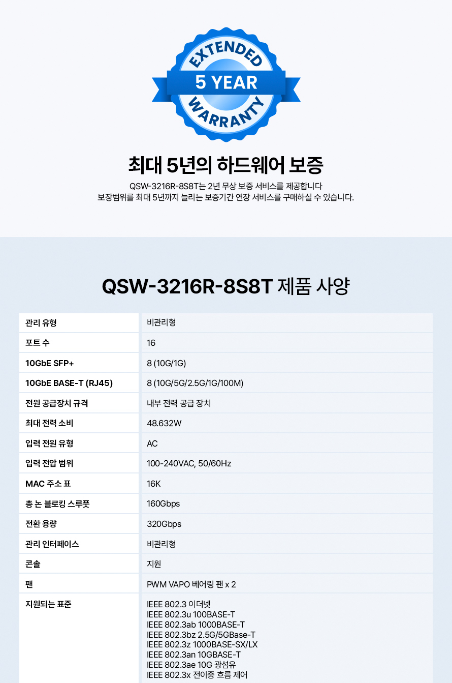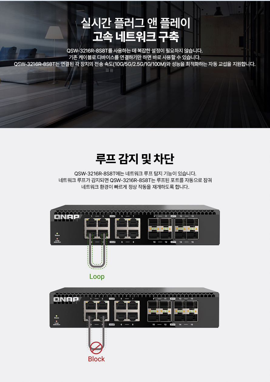 [큐냅] QNAP QSW-3216-8S8T 비관리형 스위치허브 10기가비트 16포트