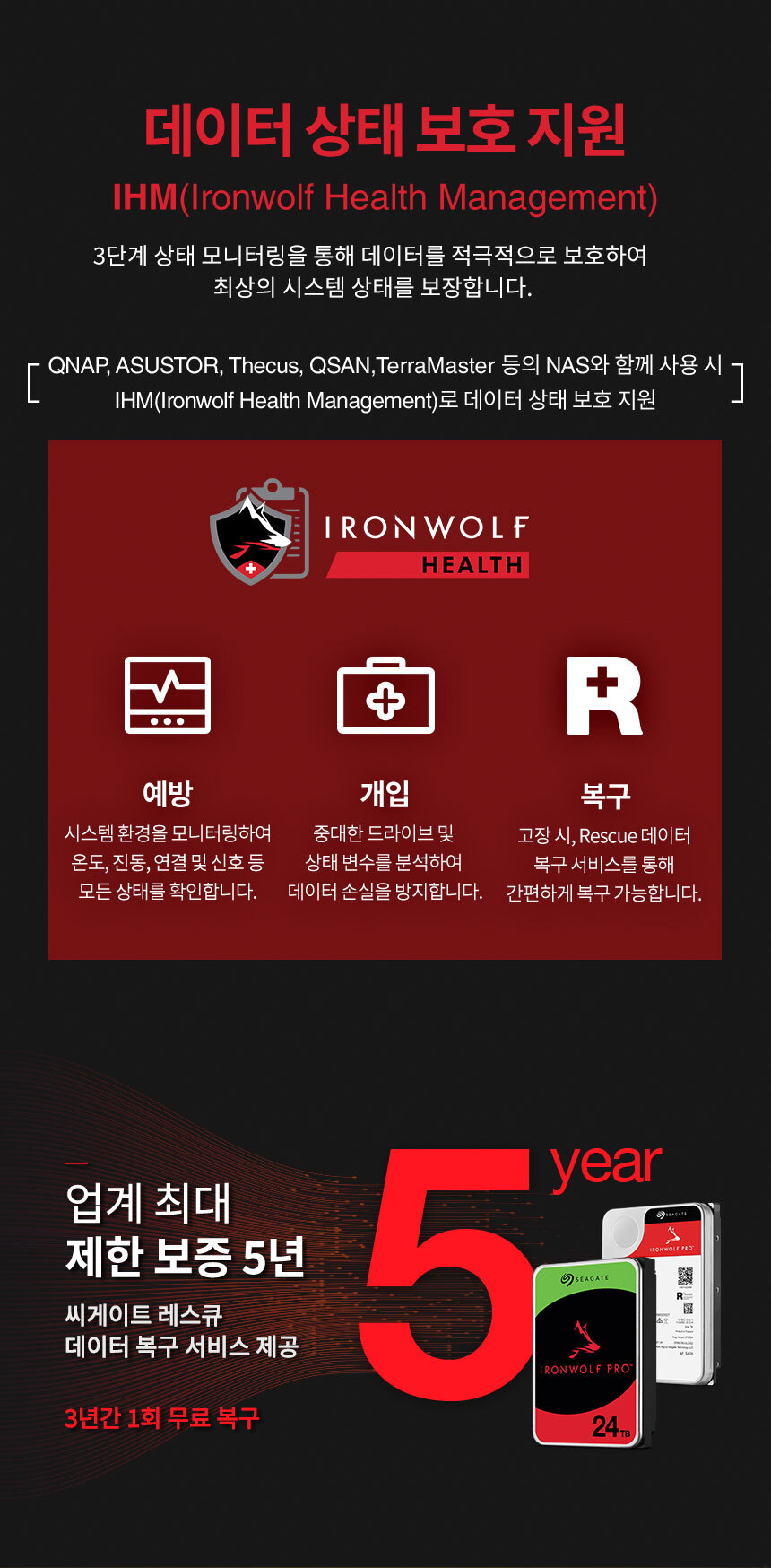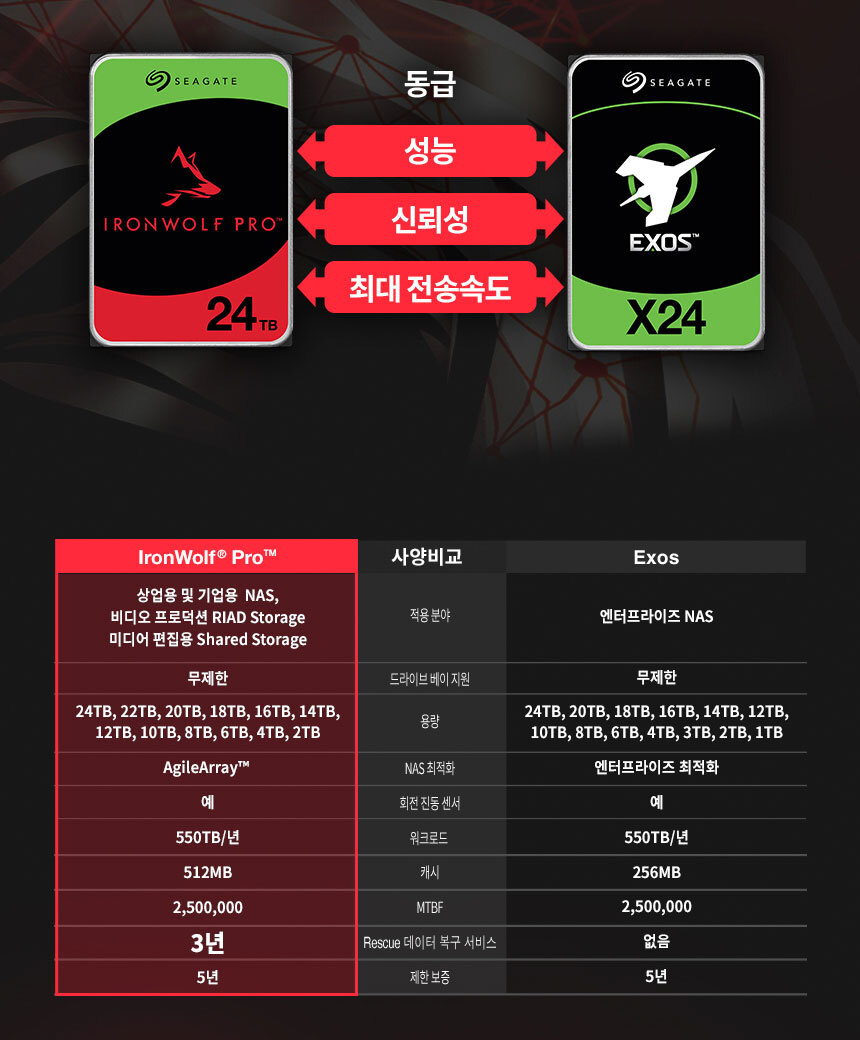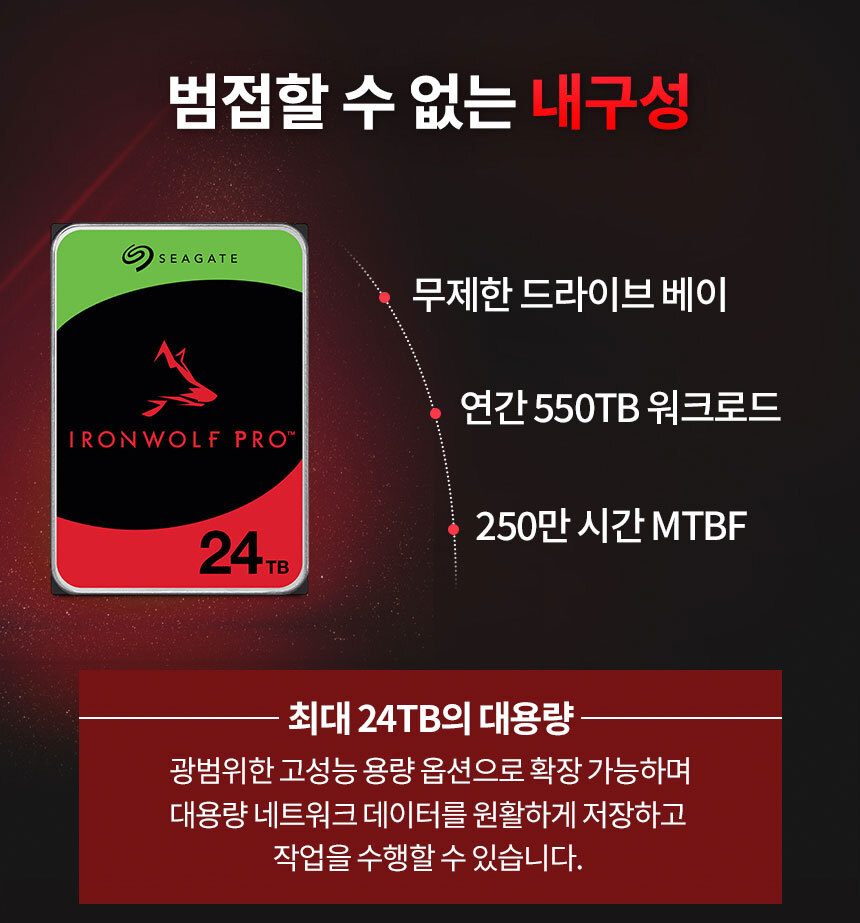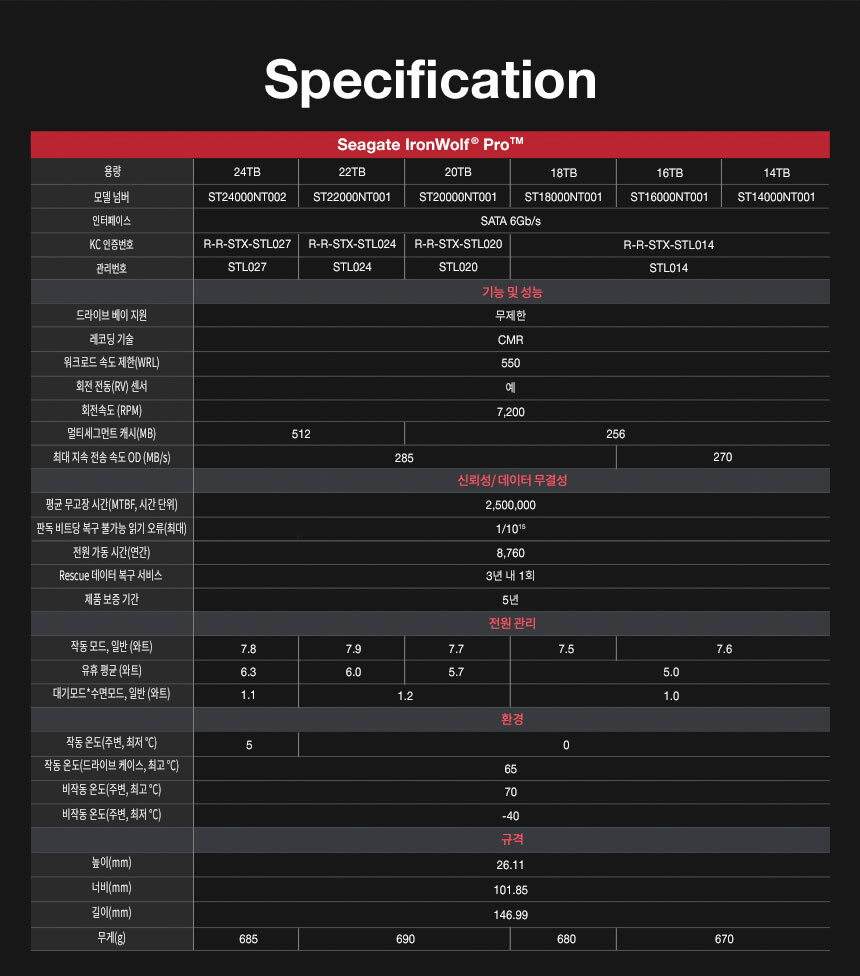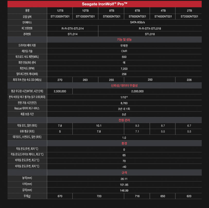 씨게이트 IronWolf Pro 6TB ST6000NT001 NAS 하드디스크 7,200RPM 256MB