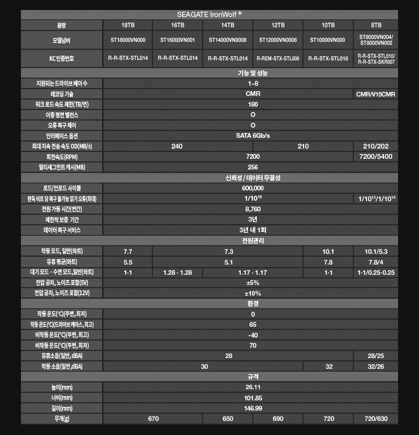 씨게이트 IronWolf 10TB ST10000VN000 NAS 하드디스크 7,200RPM 256MB