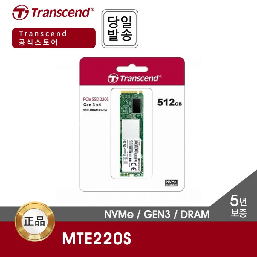 트랜센드 MTE220S 512GB M.2 NVMe SSD DRAM GEN3 TLC