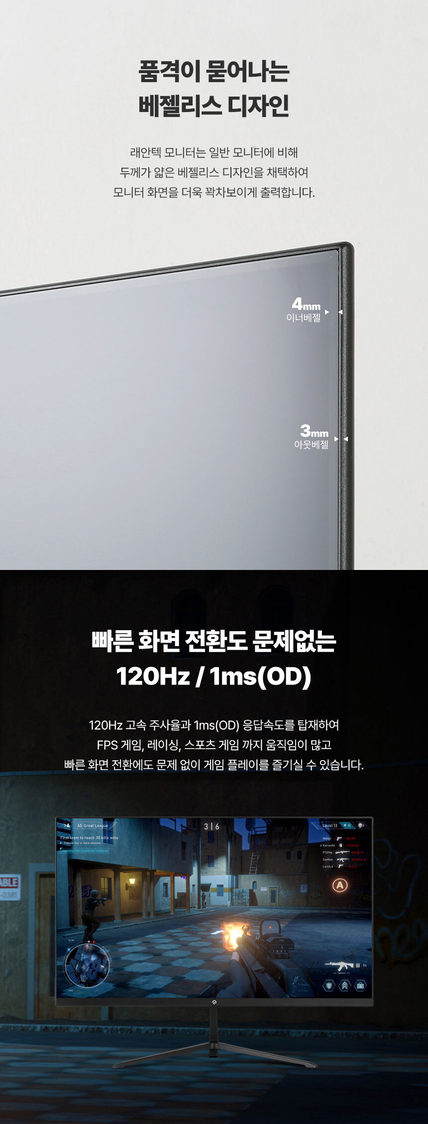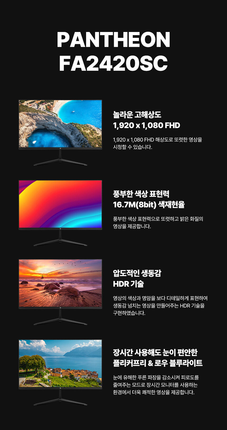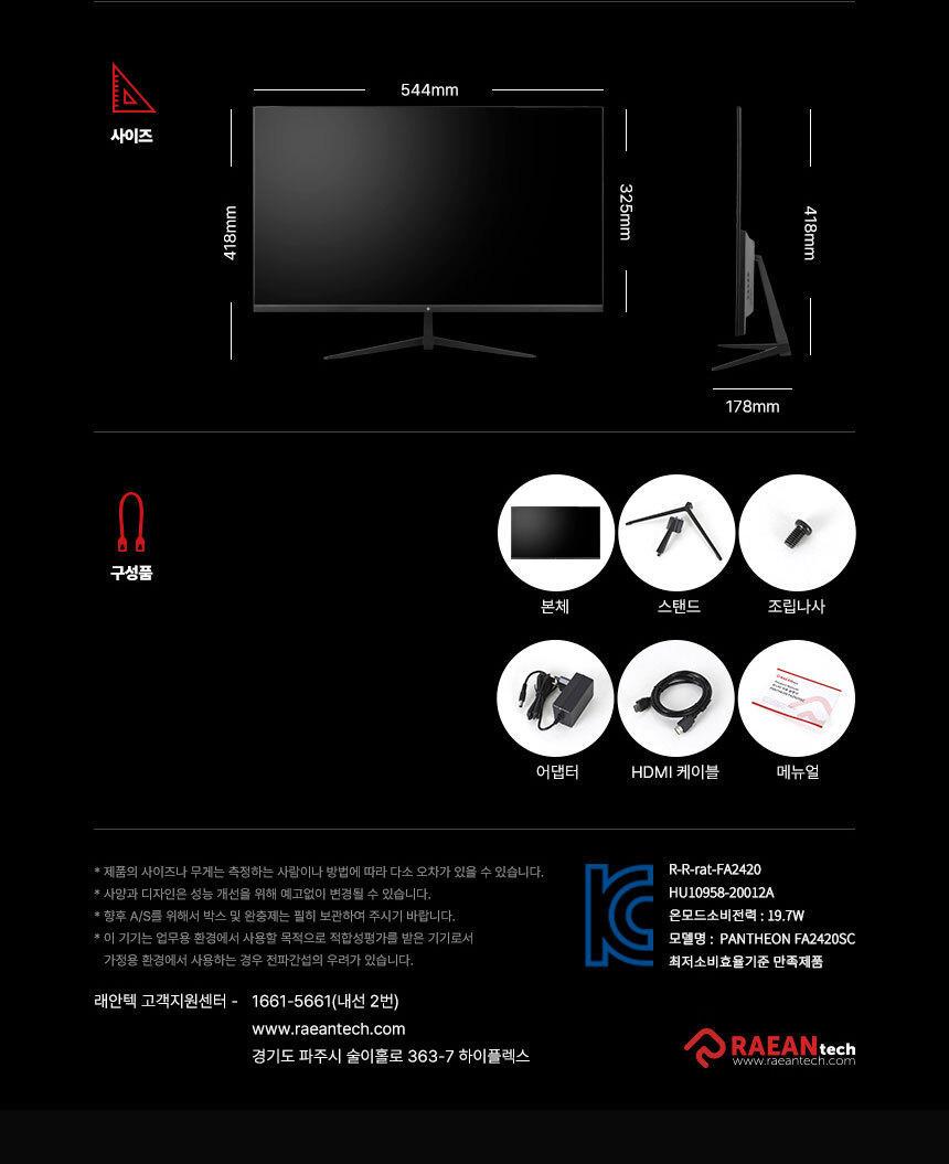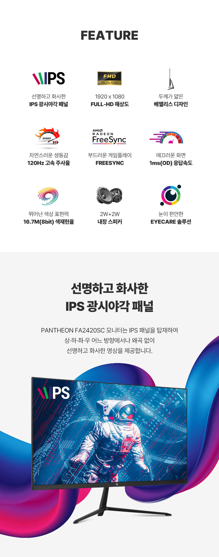 [ 래안텍 ] PANTHEON FA2420SC FHD 120Hz IPS 24인치 게이밍 무결점 모니터