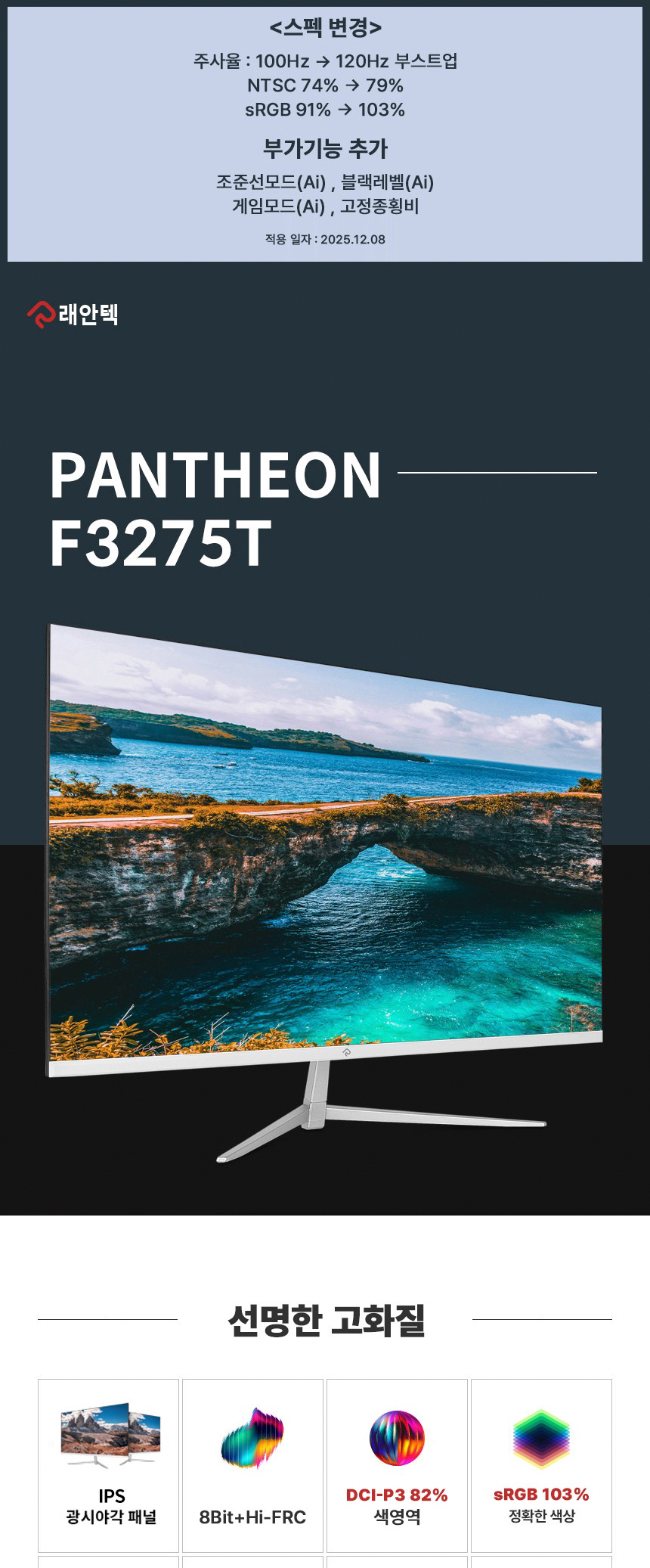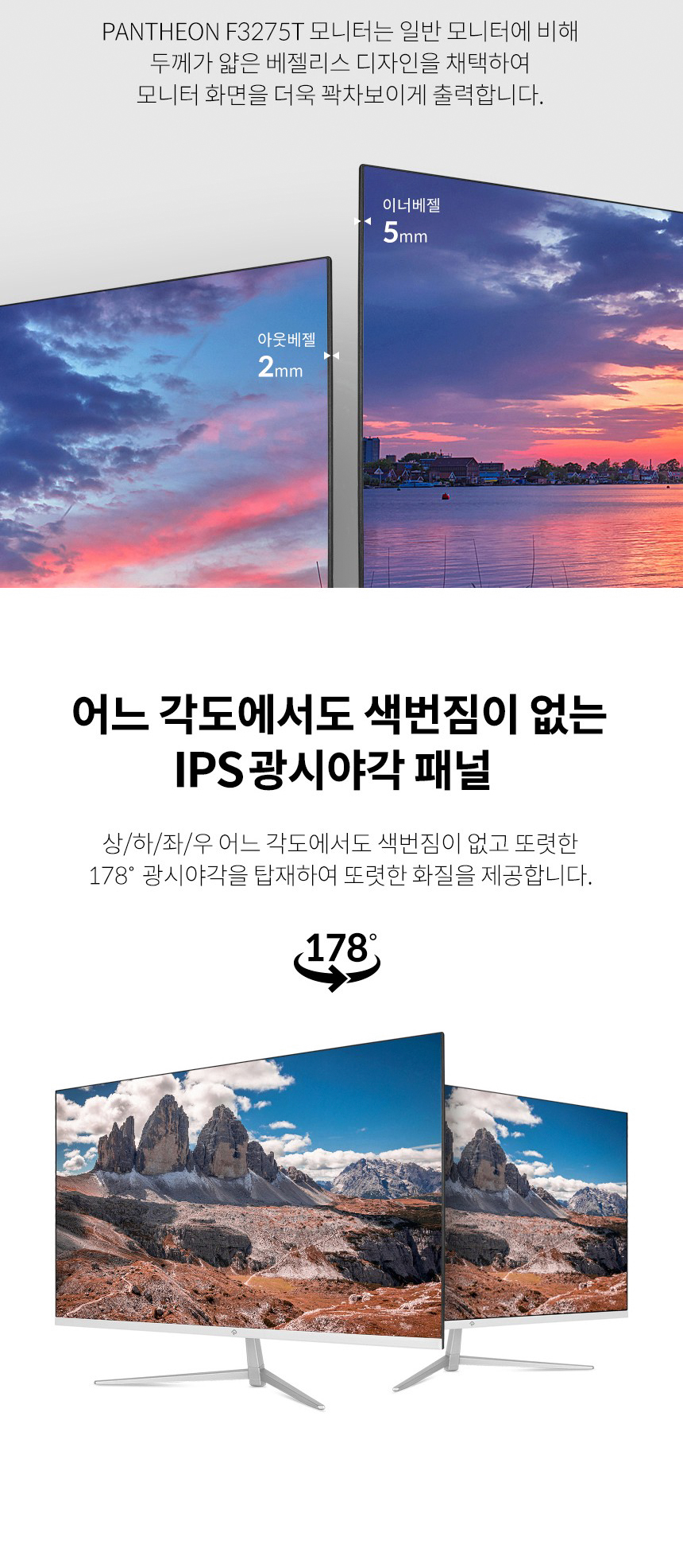 [ 래안텍 ] PANTHEON F3275T 화이트 FHD 75Hz IPS 32인치 베젤리스 무결점 모니터