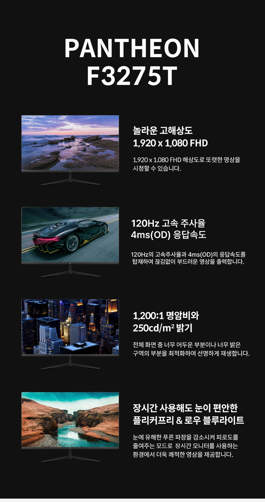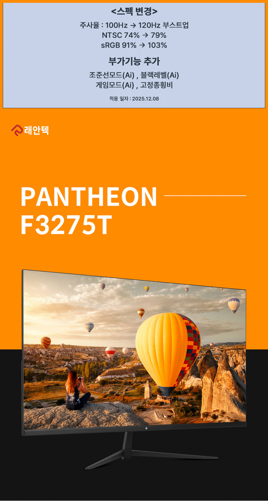 [ 래안텍 ] PANTHEON F3275T 블랙 FHD 75Hz IPS 32인치 베젤리스 무결점