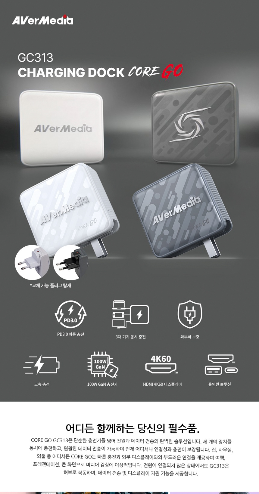 [에버미디어] GC313 CORE GO Charging Dock 블랙