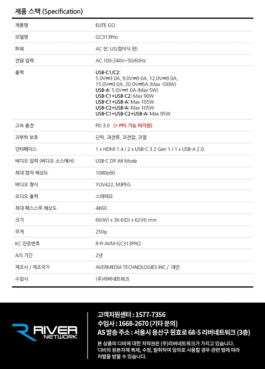 [에버미디어] GC313 PRO Charging Capture ELITE GO 화이트