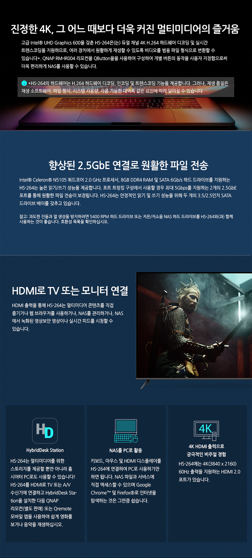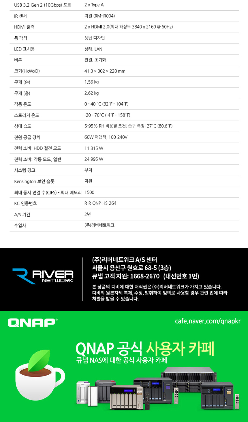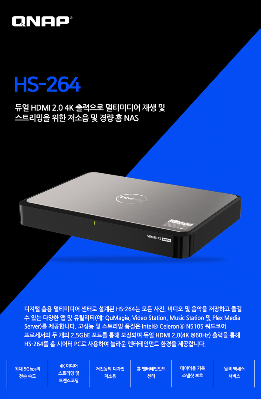 [큐냅] QNAP HS-264-8G 2BAY 쿼드코어 개인 스트리밍 스토리지 [하드 미포함]