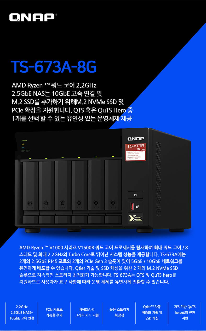 [큐냅] QNAP TS-673A-8G 6베이 쿼드코어 NAS 스토리지 [하드 미포함]