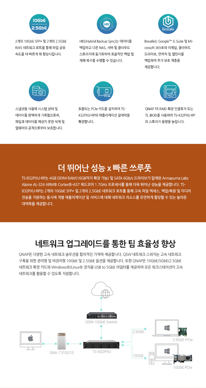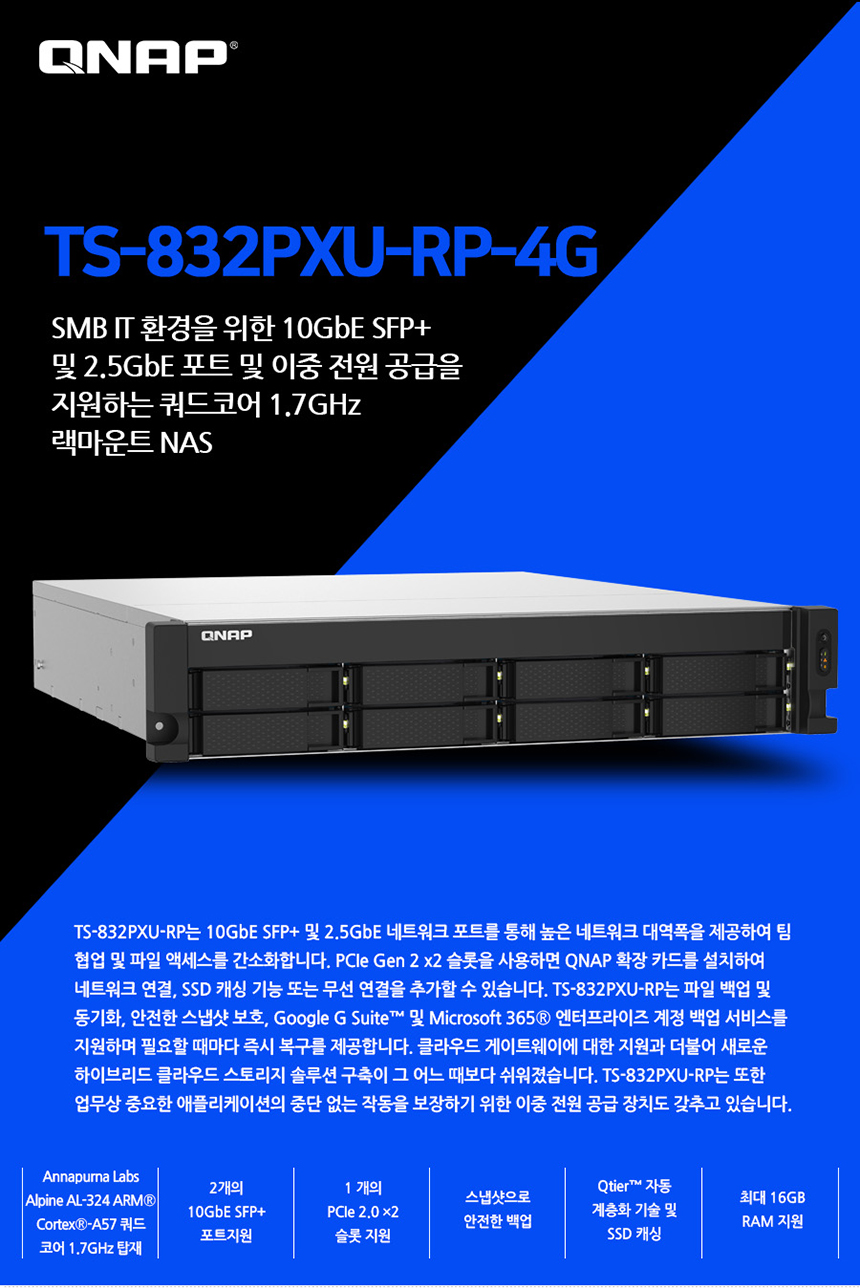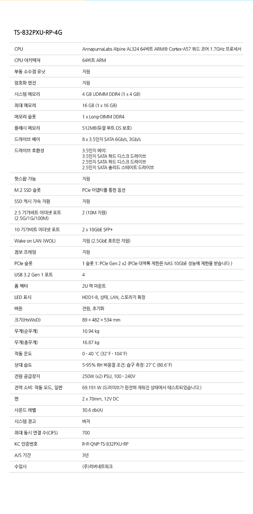 [큐냅] QNAP TS-432PXU-RP-2G 4베이 쿼드코어 NAS 서버 스토리지 [하드 미포함]