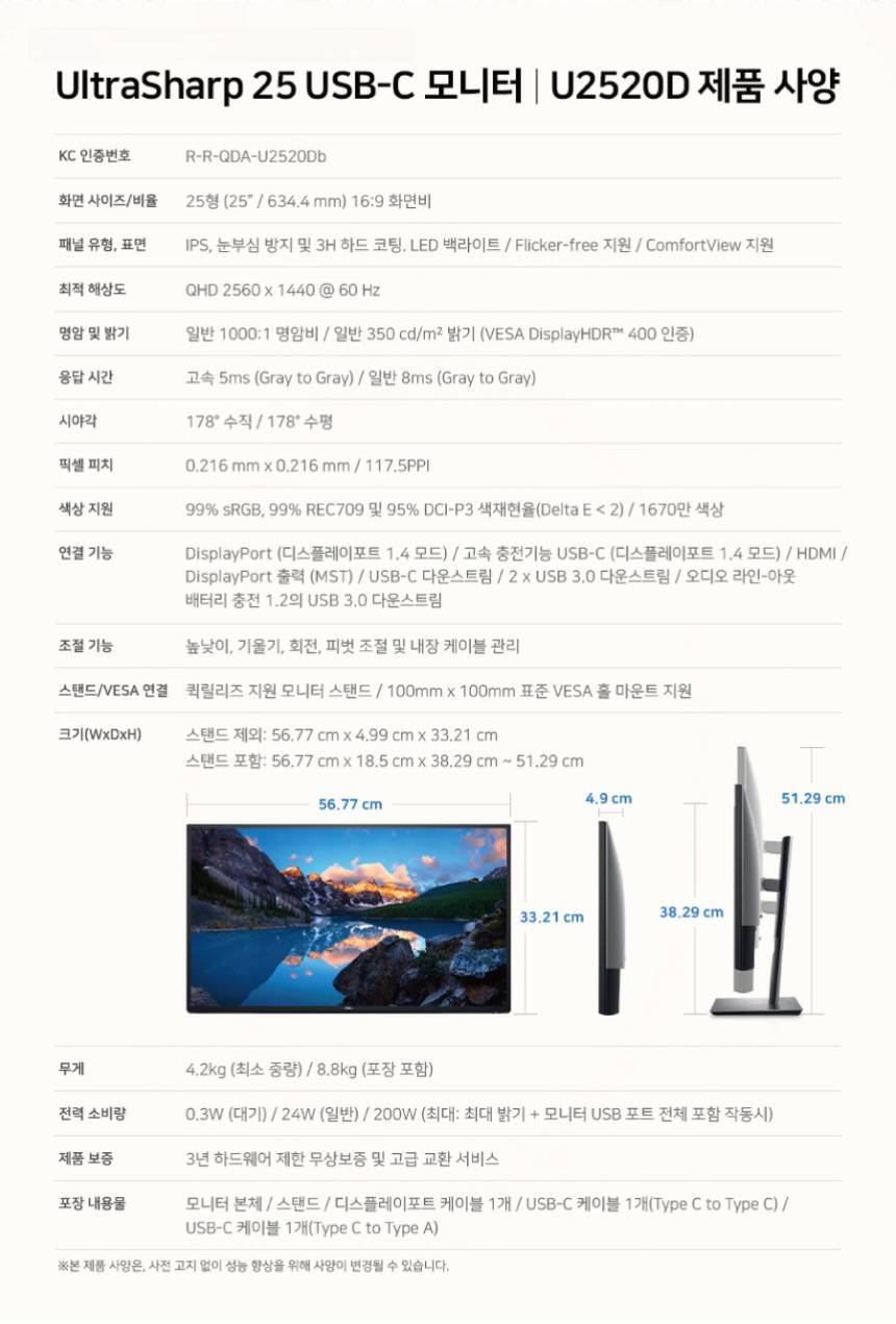 [DELL] UltraSharp U2520D QHD 60Hz 25인치 모니터