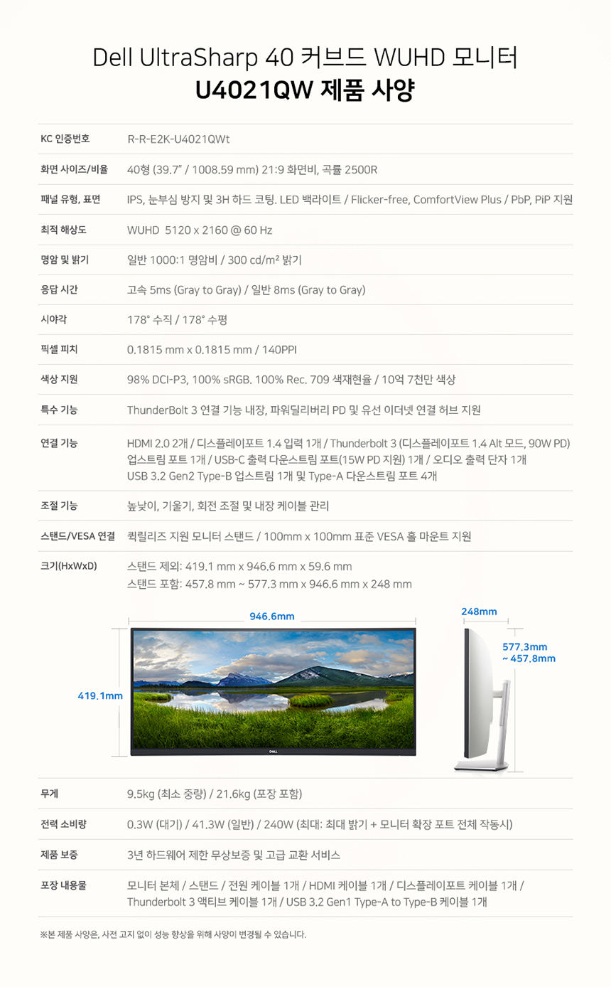 [DELL] UltraSharp U4021QW WQHD 60Hz 40인치 커브드모니터
