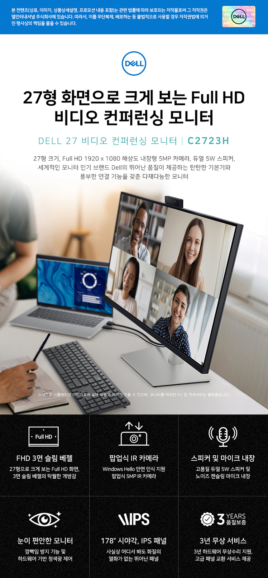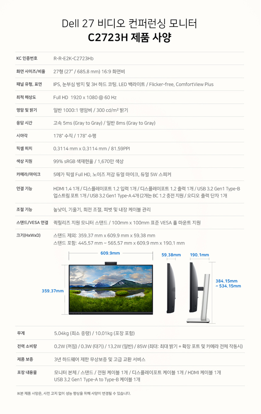 [DELL] C2723H FHD 60Hz 27인치 멀티스탠드 사무용모니터