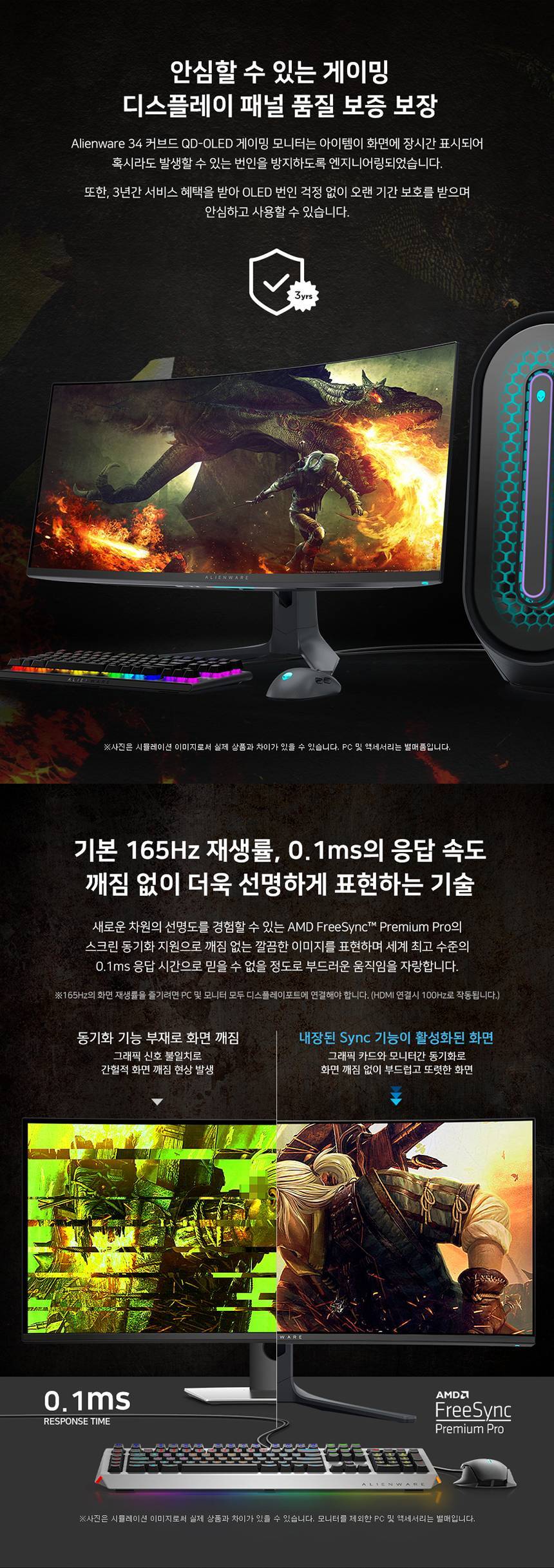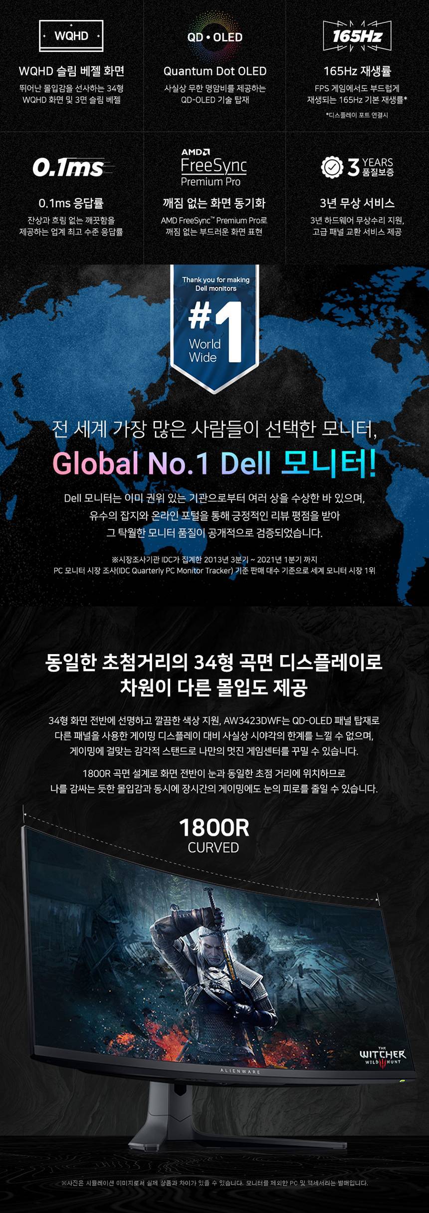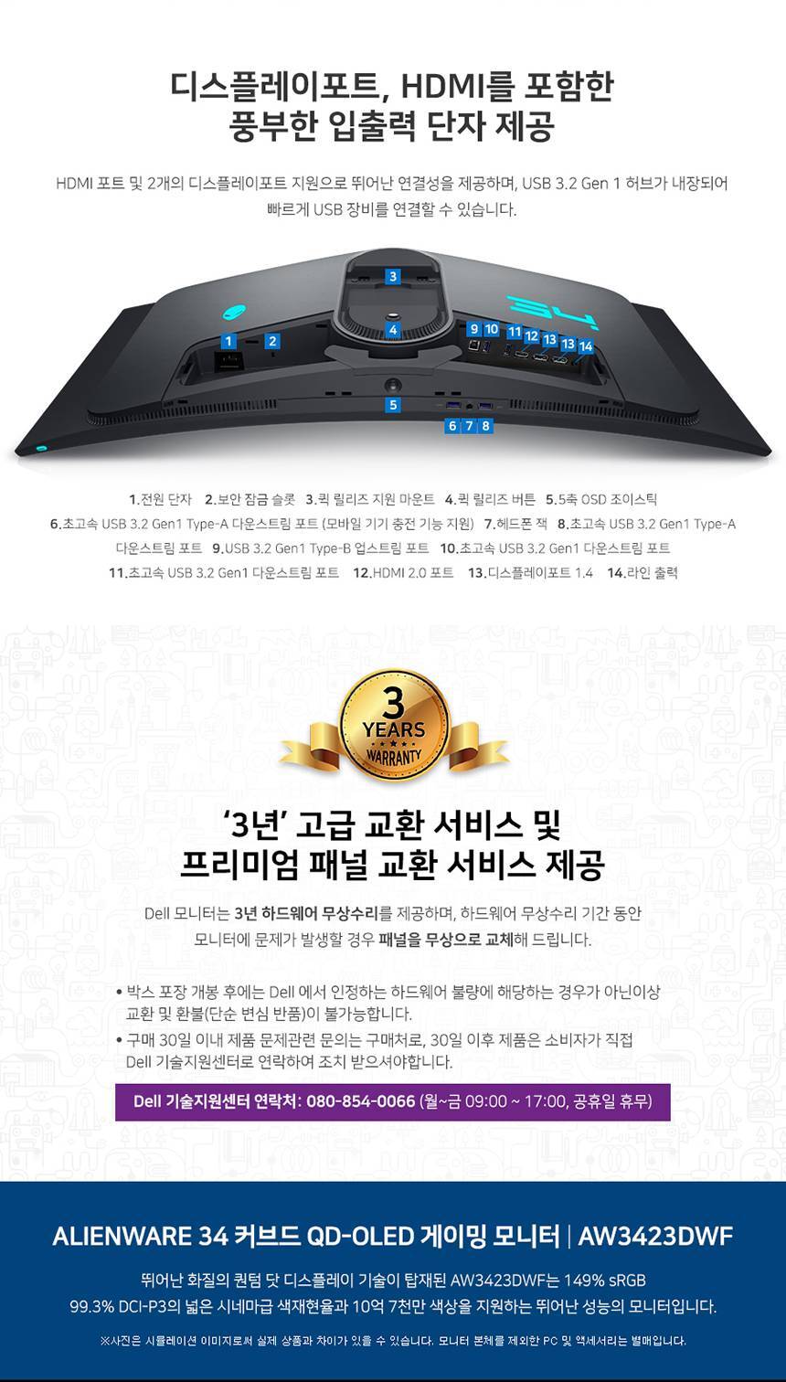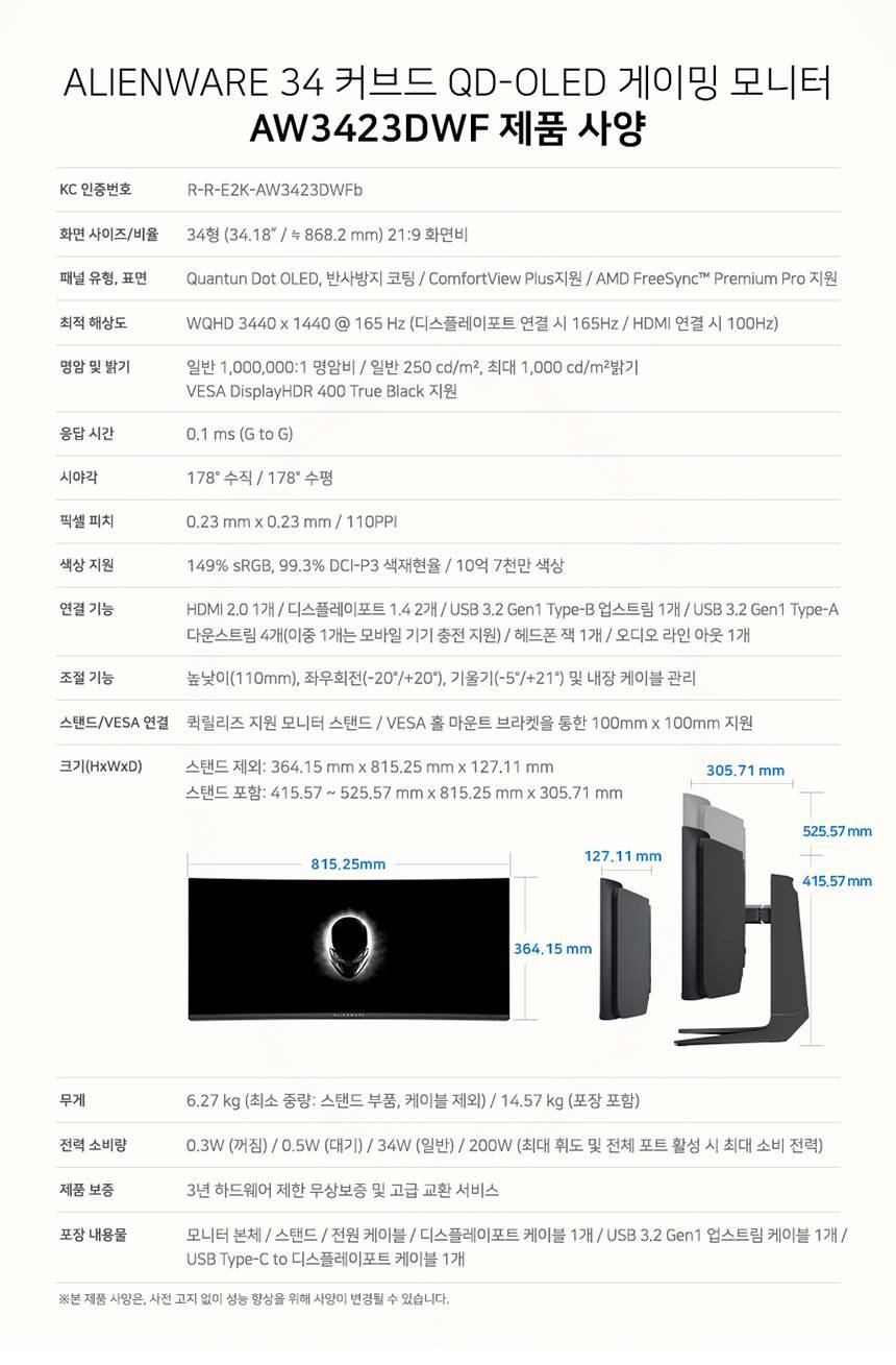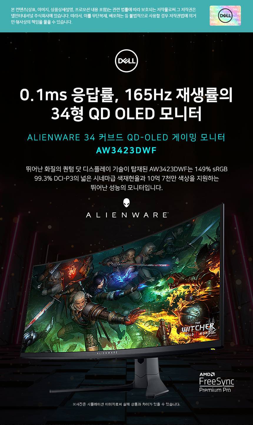 [DELL] 에일리언웨어 AW3423DWF WQHD 165Hz 34인치 커브드모니터