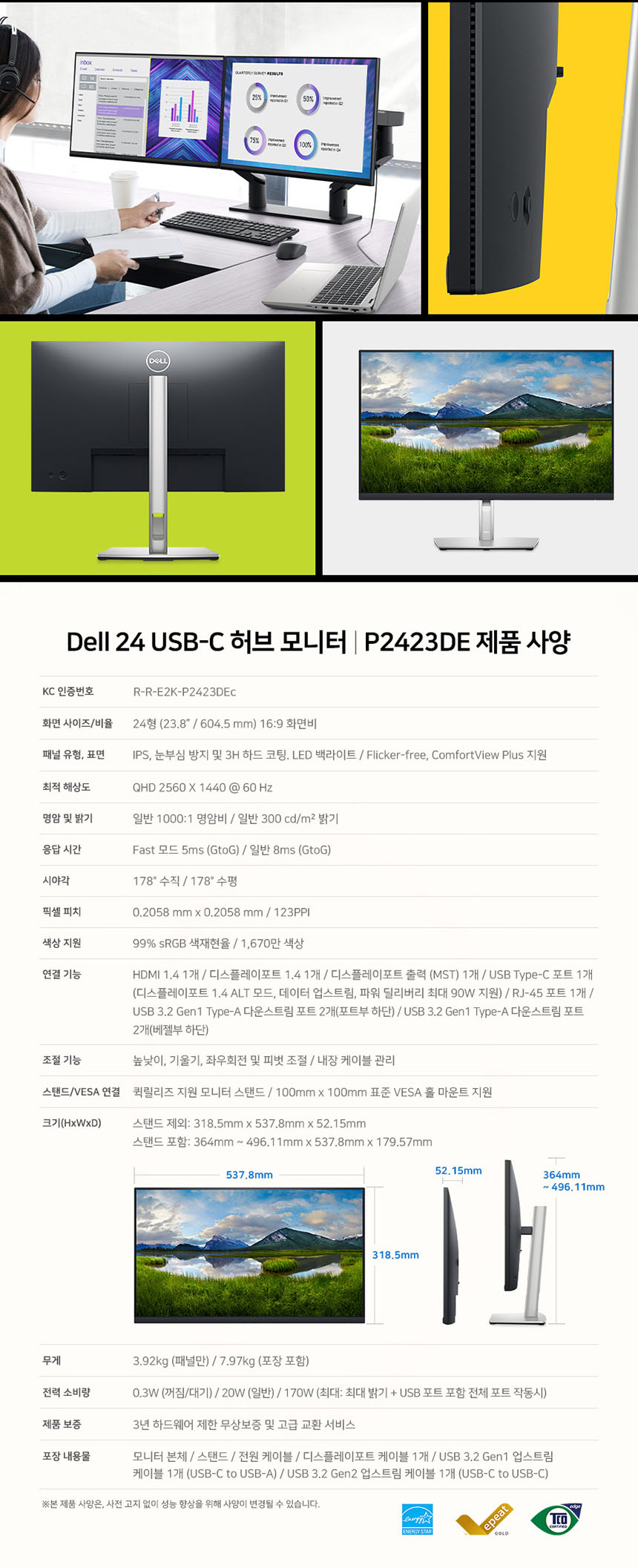 [DELL] P2423DE QHD 60Hz 24인치 사무용 모니터