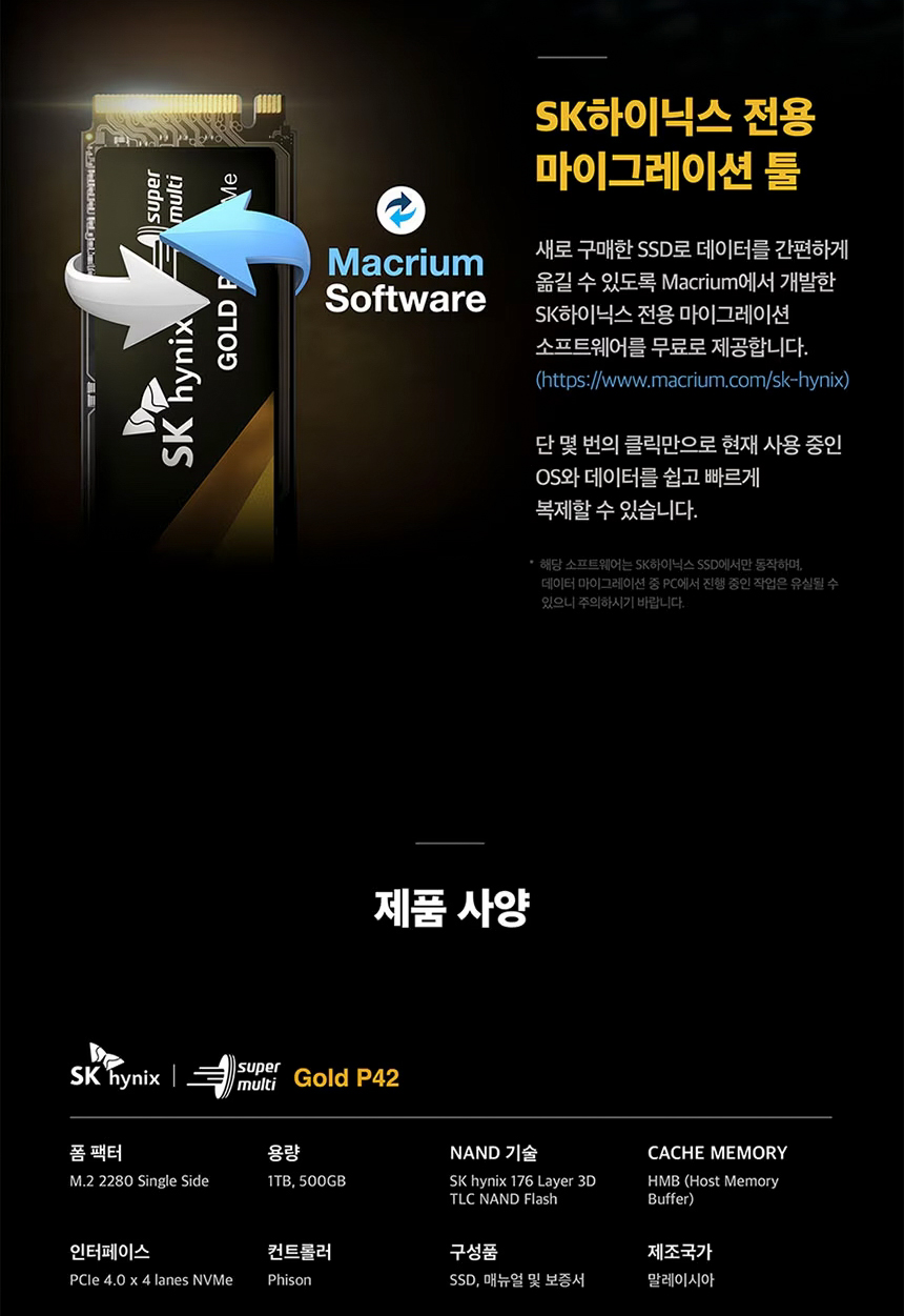 [SK하이닉스] Gold P42 1TB M.2 NVMe TLC SSD