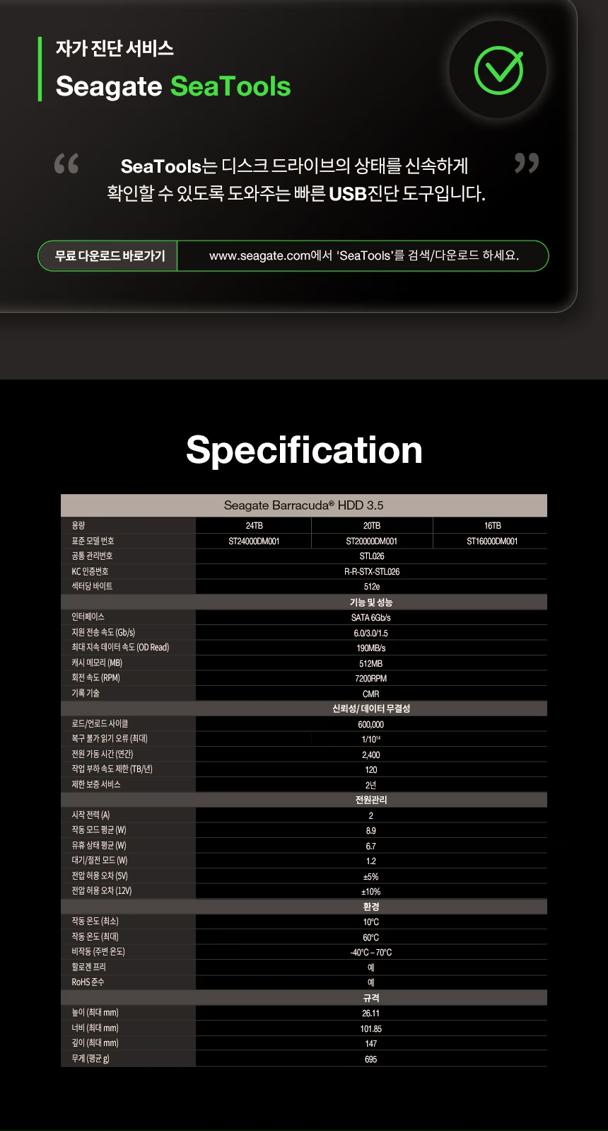 [SEGATE] Barracuda HDD 16TB ST16000DM001 하드디스크