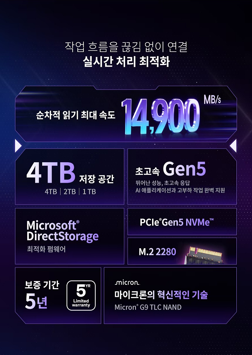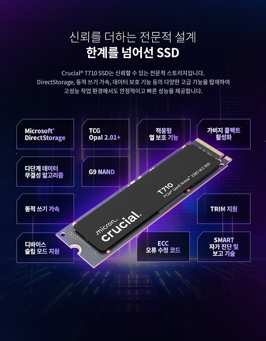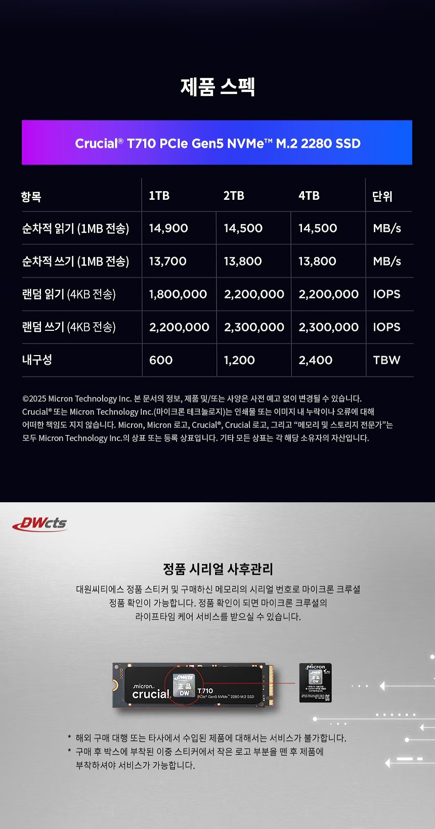 [마이크론] Crucial T710 1TB M.2 NVME SSD 대원CTS