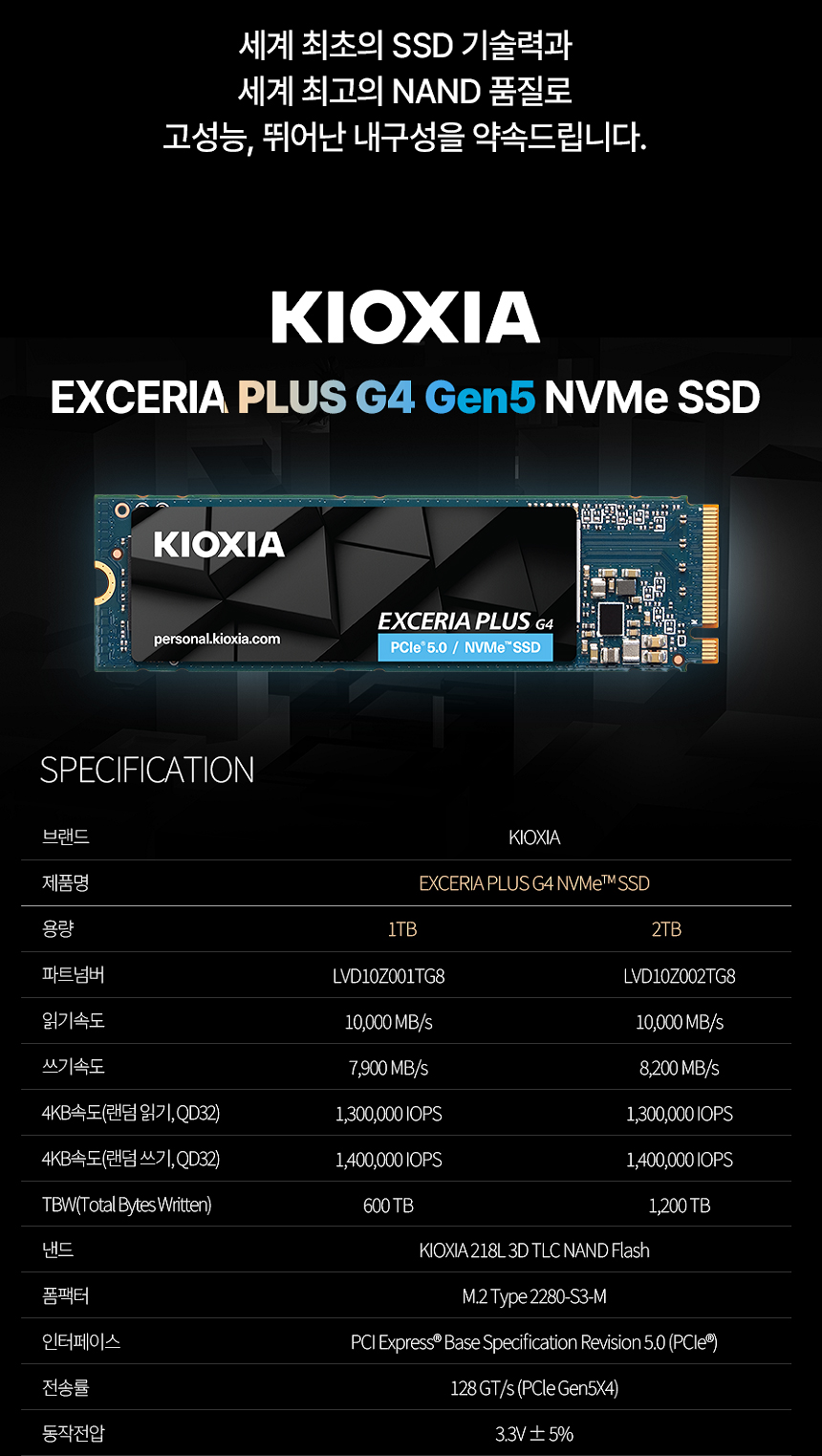 [KIOXIA] Exceria Plus G4 2TB M.2 NVMe TLC SSD