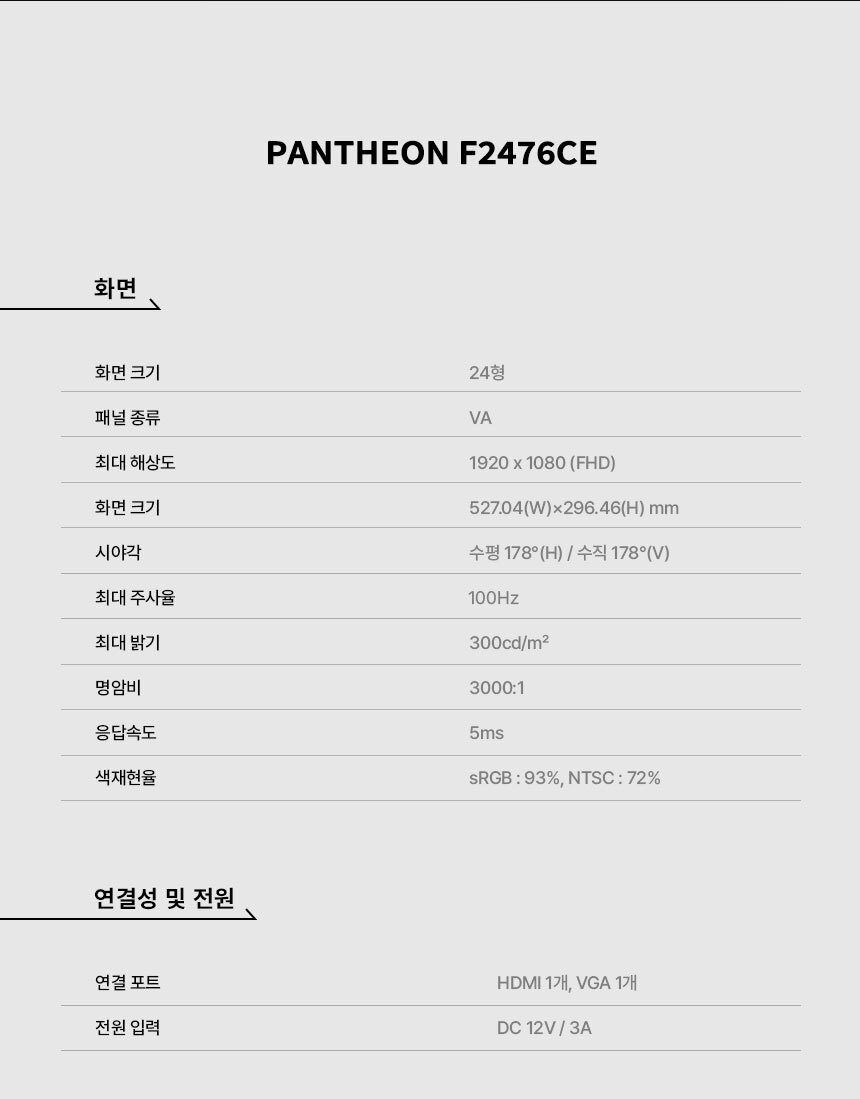 [ 래안텍 ] PANTHEON F2476CE 프레임리스 VA 24인치 사무용 무결점 모니터