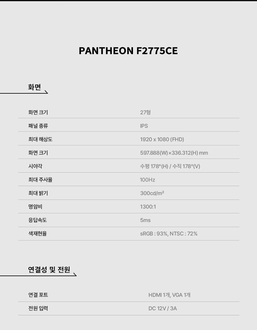 [ 래안텍 ] PANTHEON F2775CE 프레임리스 IPS 27인치 사무용 무결점 모니터