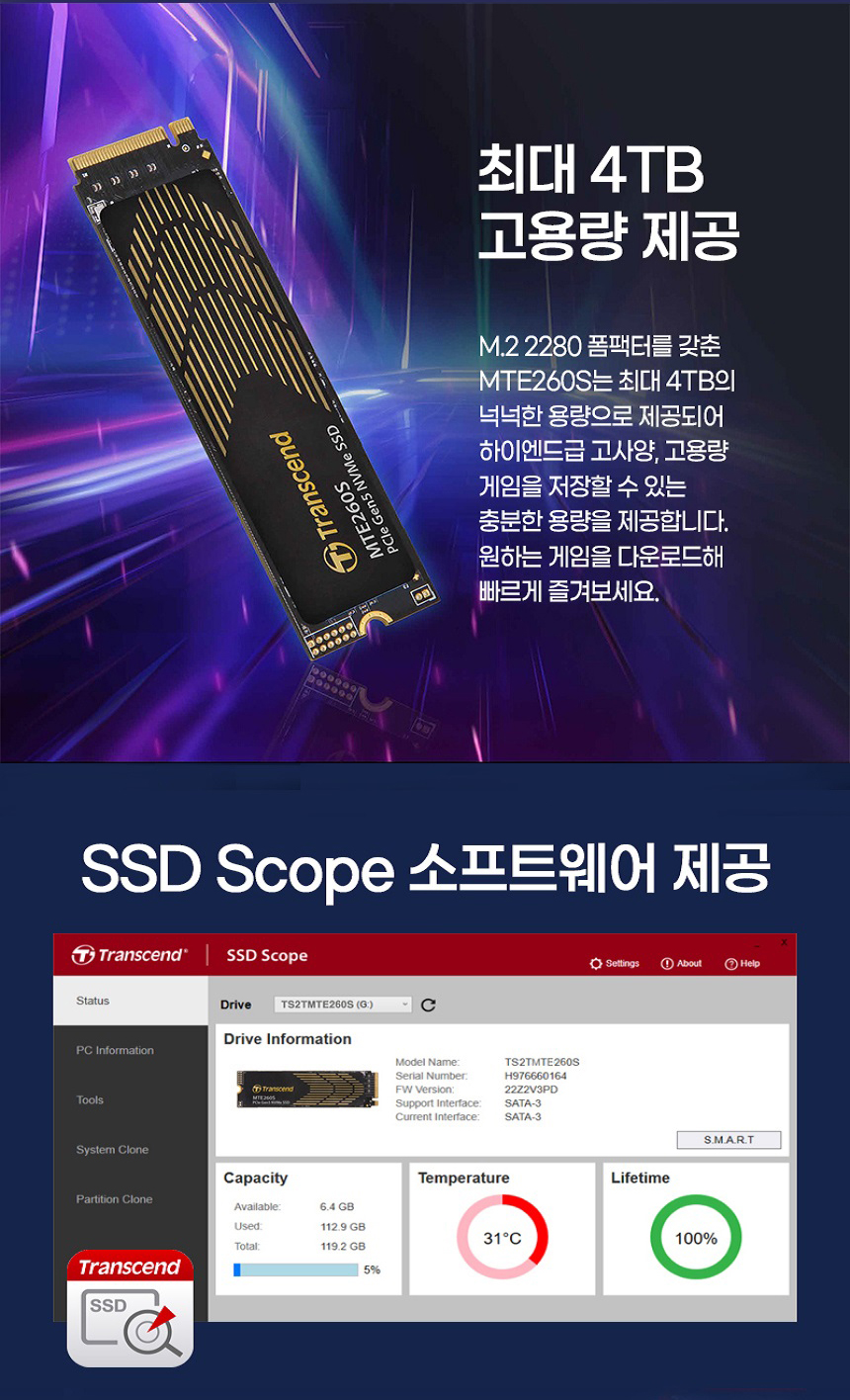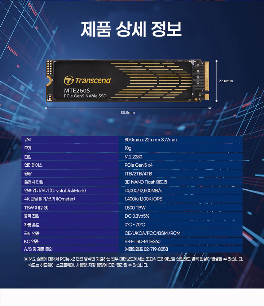 [트랜센드] Transcend MTE260S 1TB M.2 NVMe SSD