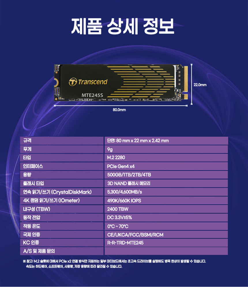 트랜센드 MTE245S M.2 2TB NVMe SSD GEN4 TLC